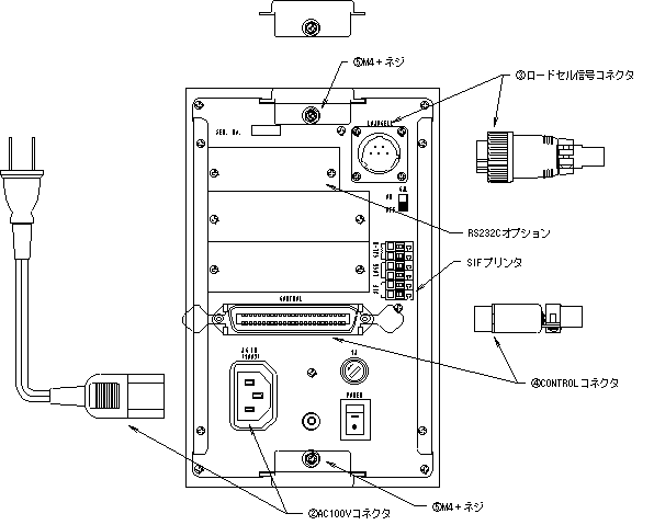 3.ロードセル(LOADCELL)コネクタ(丸形)は、外枠のネジを反時計方向に回してネジを外してから、