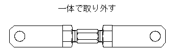 両側ナックル、ロックナット、ターンバックル(調整ボルト)は分解しないで、上下左右がわかるように印をつけてから、一体で取り外します。