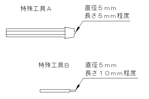 それから特殊工具A(図参照)をテーパーピンの中心に当て5mmほど打ち出し、残りを特殊工具Bで打ち出します。